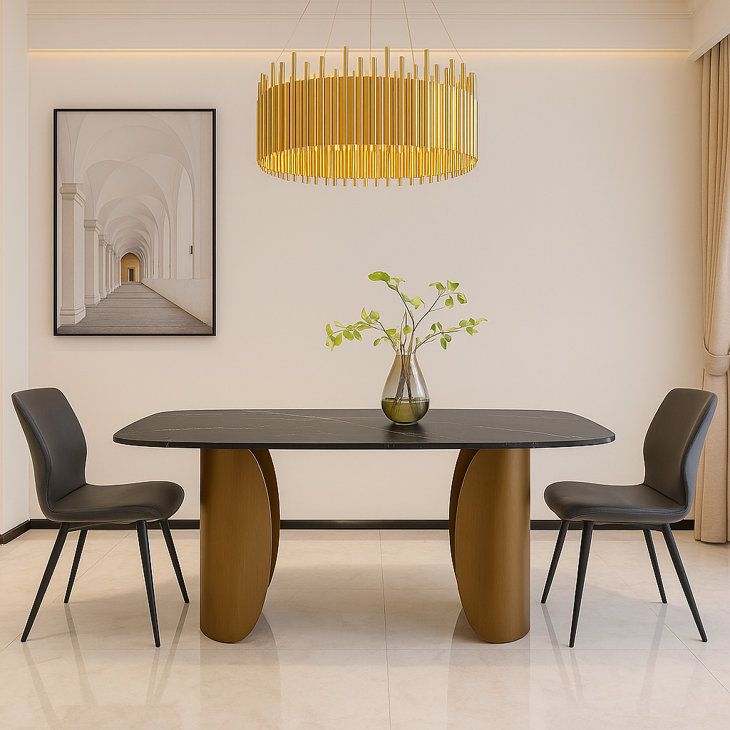 La Table à manger en céramique rectangulaire Nora séduit par son alliance subtile entre modernité et raffinement. Son plateau en céramique effet marbré noir, aux délicates veines blanches, offre une esthétique élégante et contemporaine. Résistante à la chaleur, aux rayures et très simple d’entretien, elle combine praticité et durabilité pour un usage quotidien.